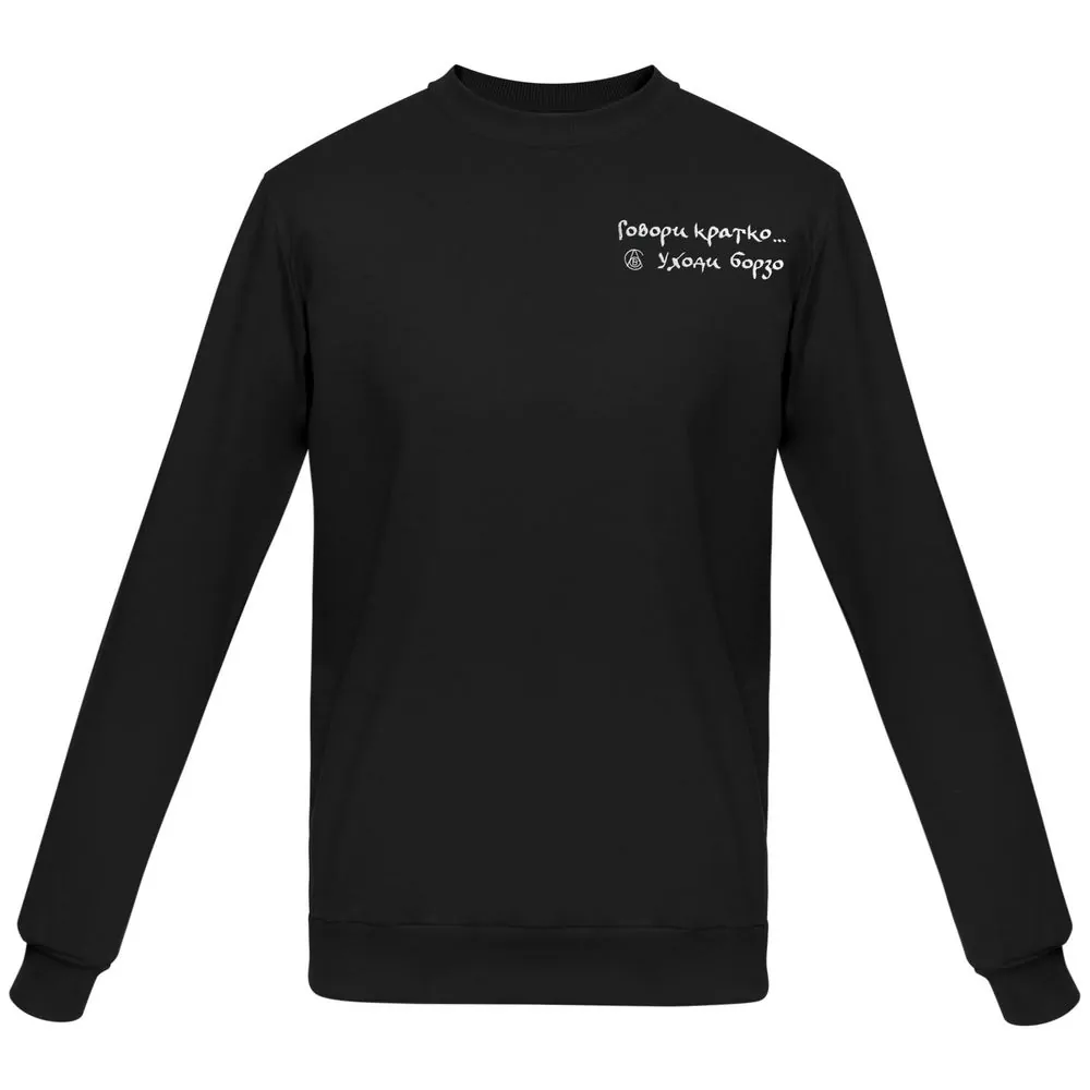 Свитшот с вышивкой «Говори кратко, уходи борзо», черный, размер L