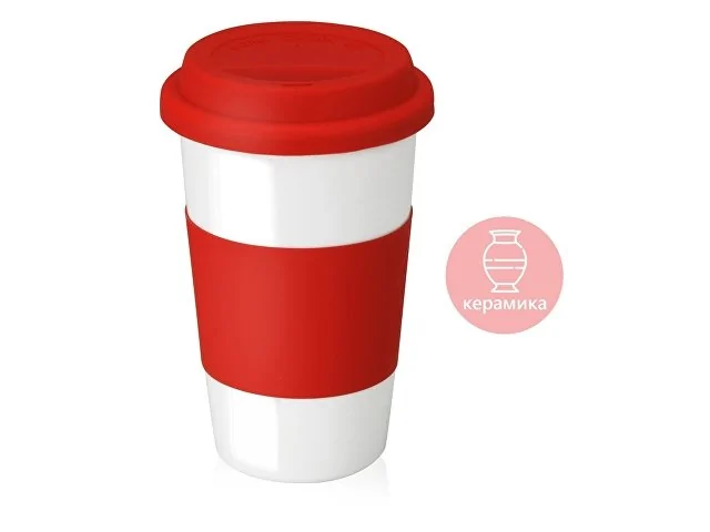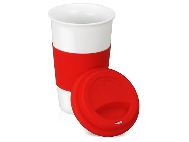 Кружка «Нью-Йорк» с силиконовой крышкой и манжетой красный/белый