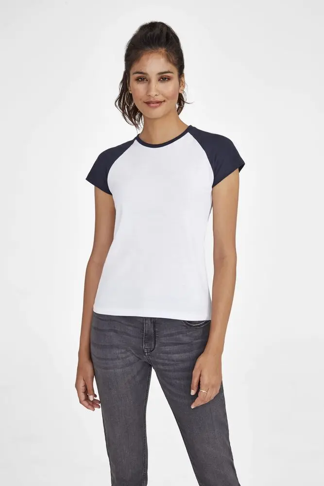 Футболка женская Milky 150 белая с темно-cиним, размер L