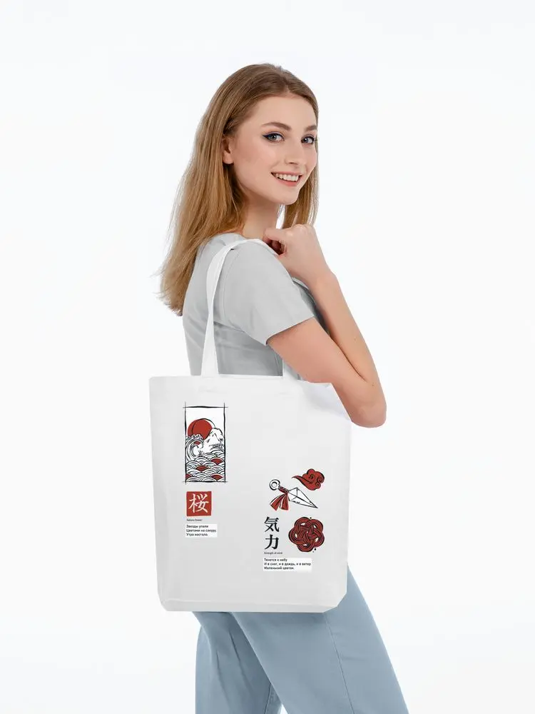 Холщовая сумка с термонаклейками «Кодекс самурая», молочно-белая